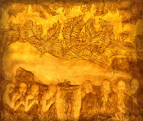 Ngày Rằm tháng Hai vào năm 544 TCN, Đức Phật Thích Ca đã nhập Niết Bàn. Ngay lúc ấy, mặt đất rung động mạnh. Trời, người, muôn vật đều khủng khiếp kinh hoàng. Chư Thiên Trời Đao Lợi ở giữa hư không rải hoa như tuyết rơi để cúng dường Đức Bổn sư Từ phụ Thích Ca Mâu Ni Phật nhập Niết bàn.