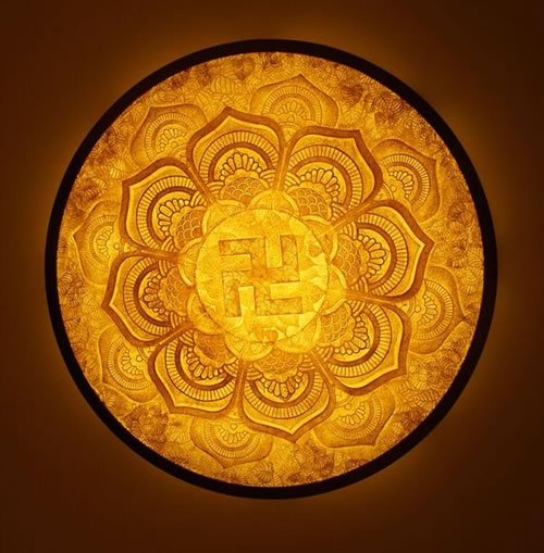 - Mẫu (B): (卍) chiều quay cùng chiều kim đồng hồ. Tức là theo chiều tương sanh trong Ngũ Hành.