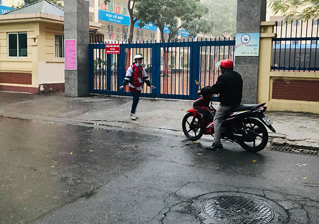 <p align="center"><i>Một học sinh THCS ở quận Nam Từ Liêm đến trường sáng 3/2 mới biết được nghỉ học.</i></p>