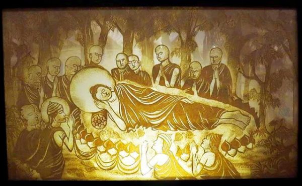 <div>Ngày Rằm tháng Hai vào năm 544 TCN, Đức Phật Thích Ca đã nhập Niết Bàn. Ngay lúc ấy, mặt đất rung động mạnh. Trời, người, muôn vật đều khủng khiếp kinh hoàng. Chư Thiên Trời Đao Lợi ở giữa hư không rải hoa như tuyết rơi để cúng dường Đức Bổn sư Từ phụ Thích Ca Mâu Ni Phật nhập Niết bàn.  </div>