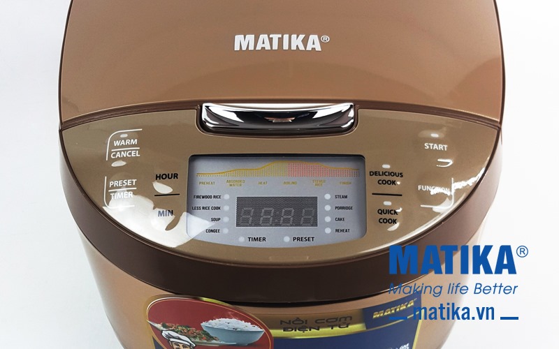 <div>Nồi cơm điện tử Matika MTK-RC1885 là một sản phẩm có thiết kế đẹp mắt, cao cấp với đa dạng các chức năng nấu, phục vụ nhiều nhu cầu của người tiêu dùng rất xứng đáng có trong căn bếp của mọi gia đình.</div>