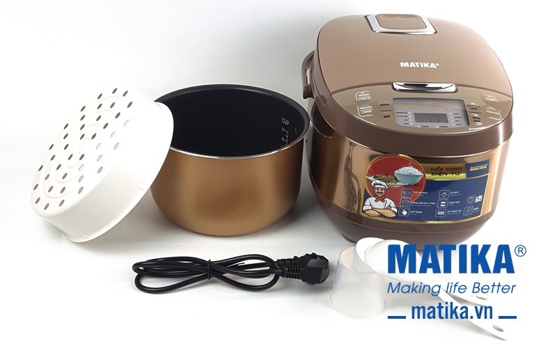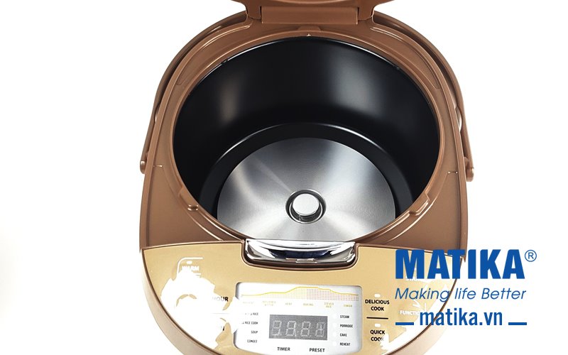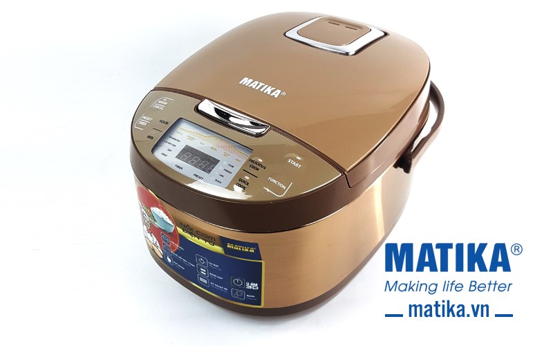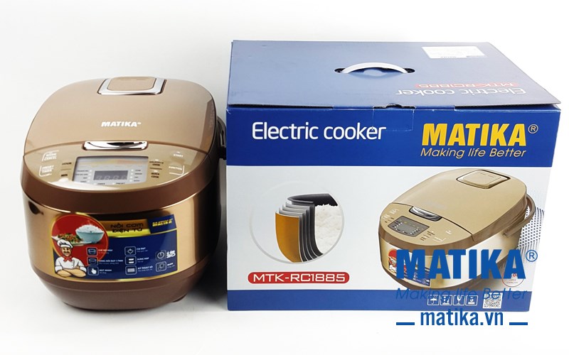 <div>Với thiết kế đẹp mắt màu vàng đồng làm chủ đạo cùng đa dạng các chức năng nấu, nồi cơm điện tử Matika MTK-RC1885 mang đến sự sang trọng cho căn bếp và là lựa chọn tuyệt vời giúp bạn thực hiện bữa cơm thơm ngon cho cả gia đình hoàn hảo nhất.</div>