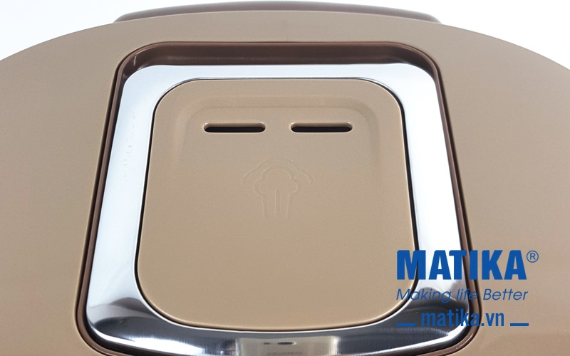 Nồi cơm điện tử Matika MTK-RC1885 có nắp thoát hơn thông minh, hiện đại giúp cân bằng lượng nước trong gạo, cho cơm dẻo và không bị nhão hoặc khô